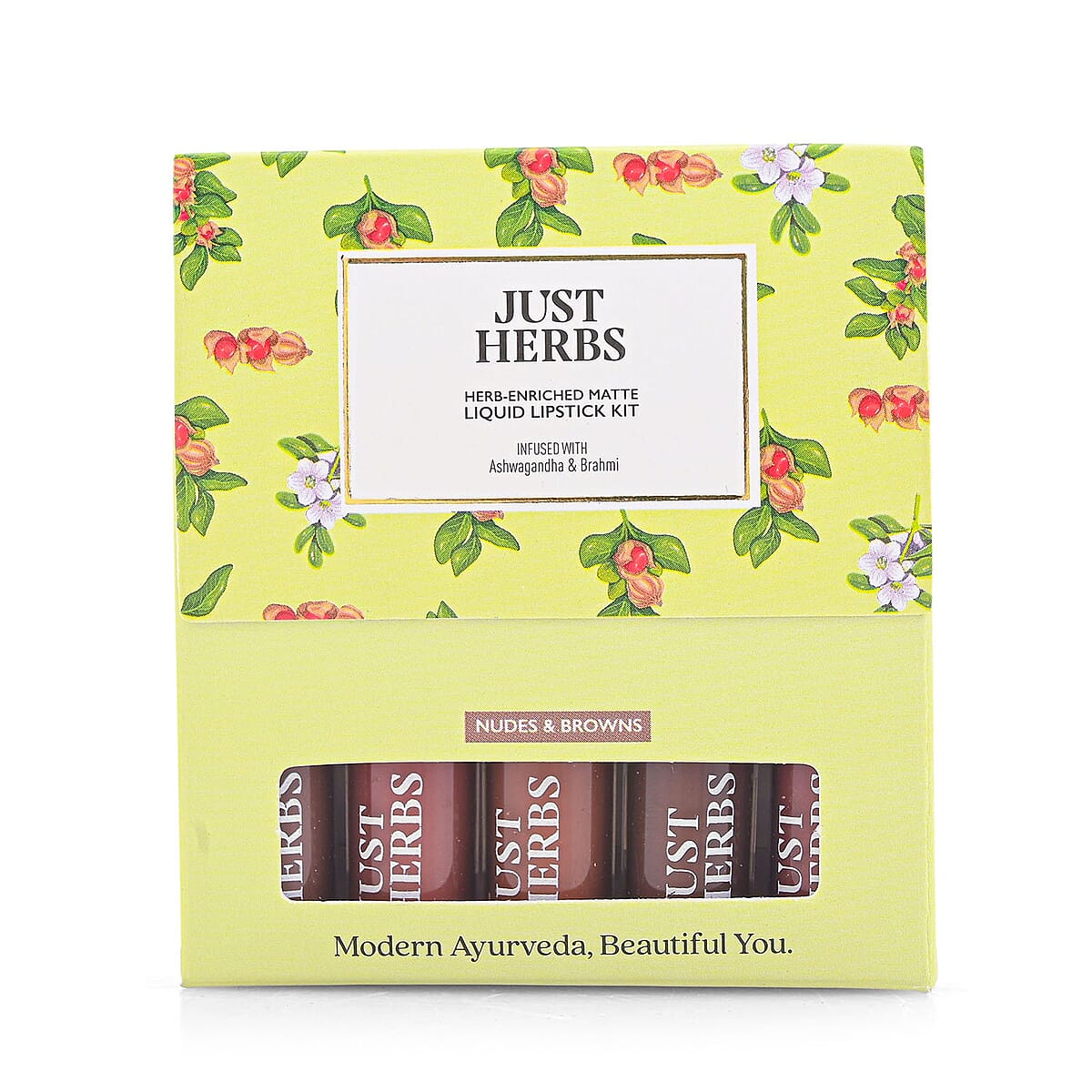 Just Herbs Set of 5 Ayurvedic Liquid Matte Finish Lipstick Kit - Nudes and Browns