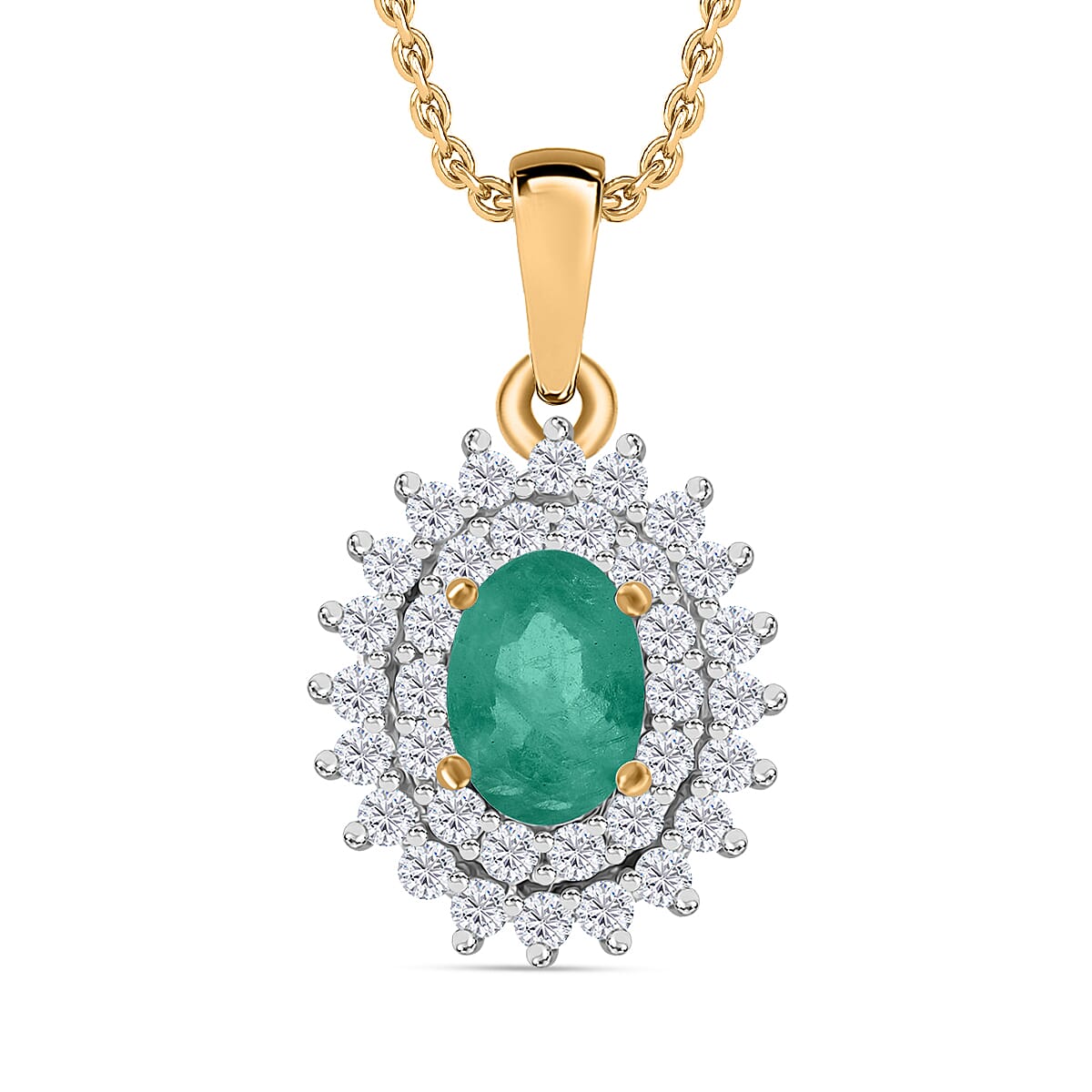 Kagem Zambian Emerald and Diamond 1.30 ctw Pendant Necklace (20 Inches) in 18K Vermeil Yellow Gold Over Sterling Silver (Del. in 10-12 Days)