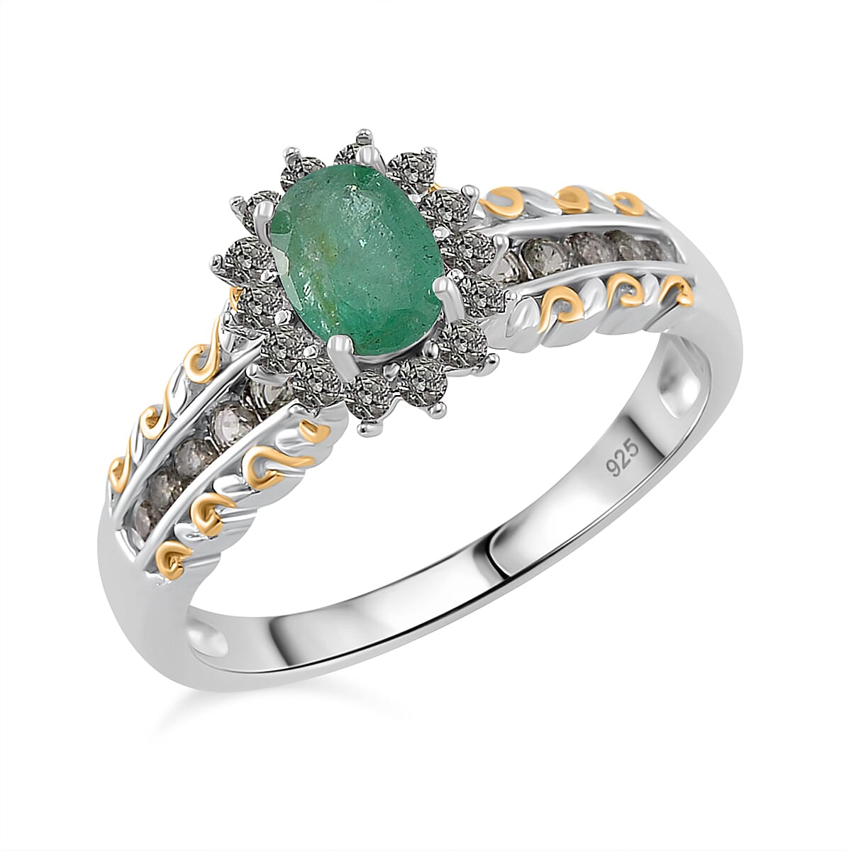 Kagem Zambian Emerald and Madagascar Green Sapphire 1.40 ctw Royal Bloom Ring in 18K Vermeil YG and Rhodium Over Sterling Silver (Size 10.0)