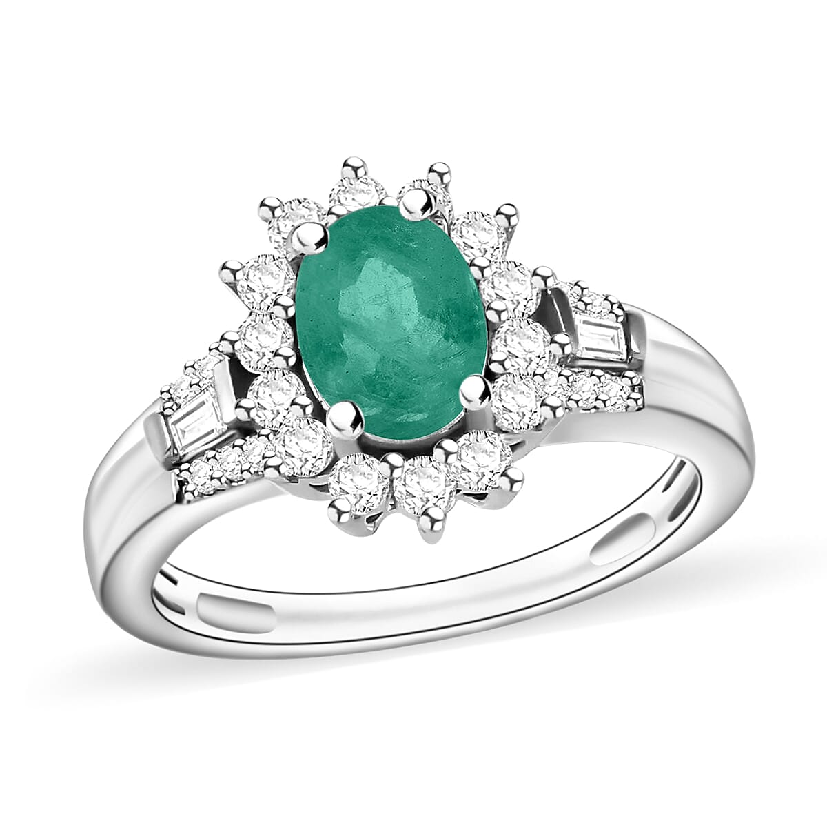 Kagem Zambian Emerald and Moissanite 1.25 ctw Ring in Rhodium Over Sterling Silver (Del. in 10-12 Days)