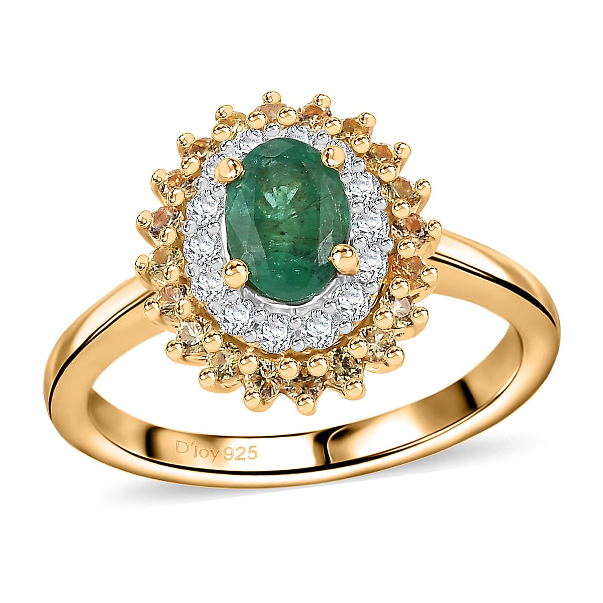 Kagem Zambian Emerald and Multi Gemstone 1.40 ctw Majesty Ring in 18K Vermeil Yellow Gold Over Sterling Silver (Size 9.0)