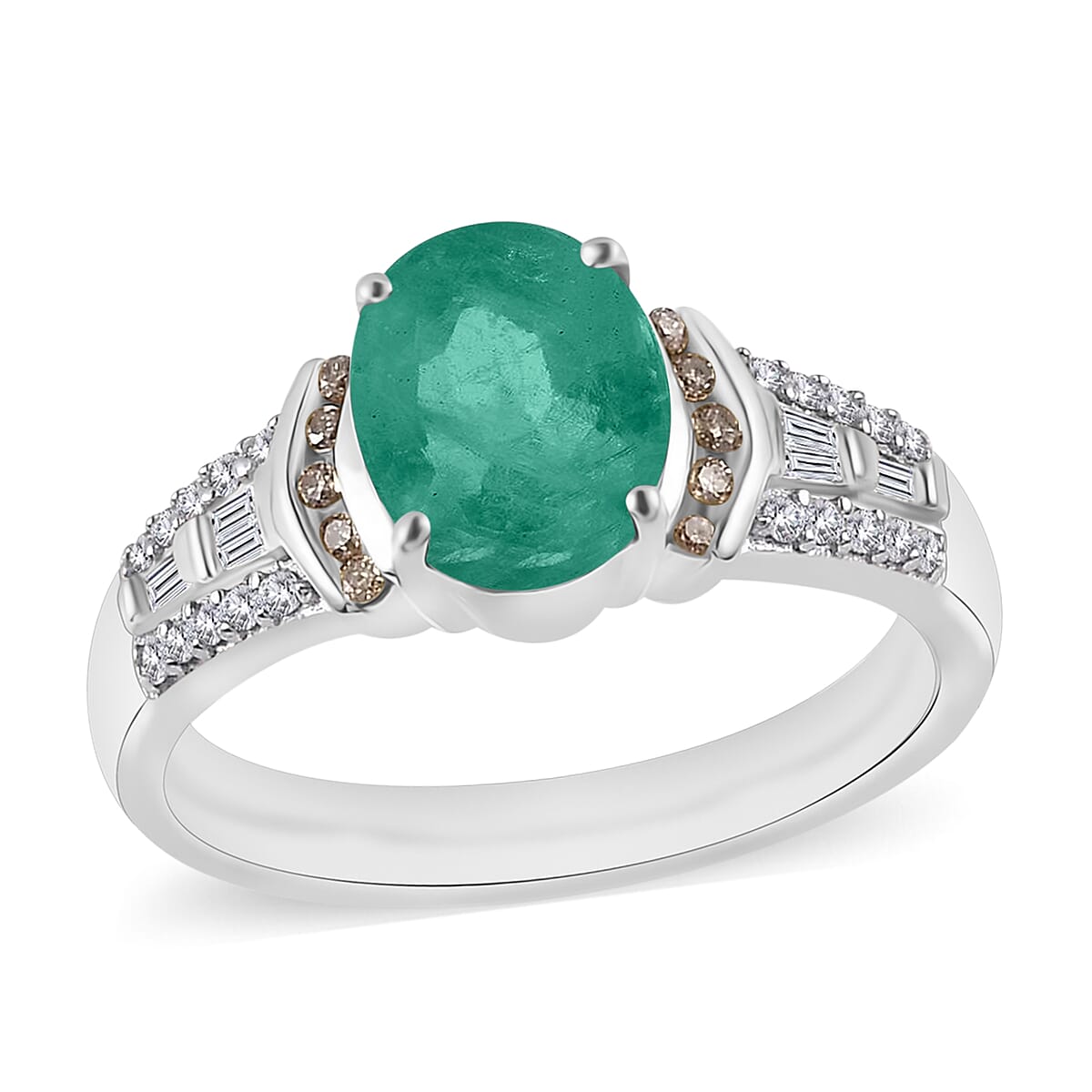 Kagem Zambian Emerald, Natural Champagne and White Diamond 2.23 ctw Ring in Rhodium Over Sterling Silver (Size 8.5) (Del. in 10-12 Days)