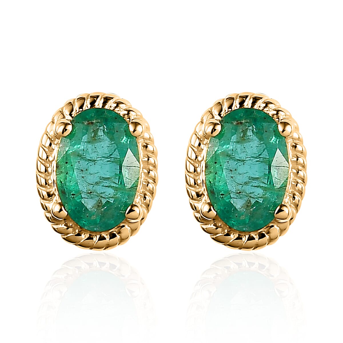 Kagem Zambian Emerald Solitaire Stud Earrings in Vermeil Yellow Gold Over Sterling Silver 0.85 ctw