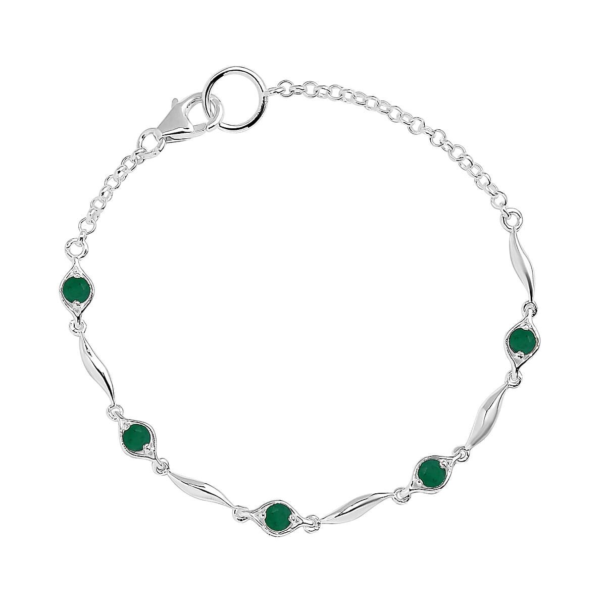Kagem Zambian Emerald Station Bracelet in Sterling Silver (7.25 In) 0.85 ctw
