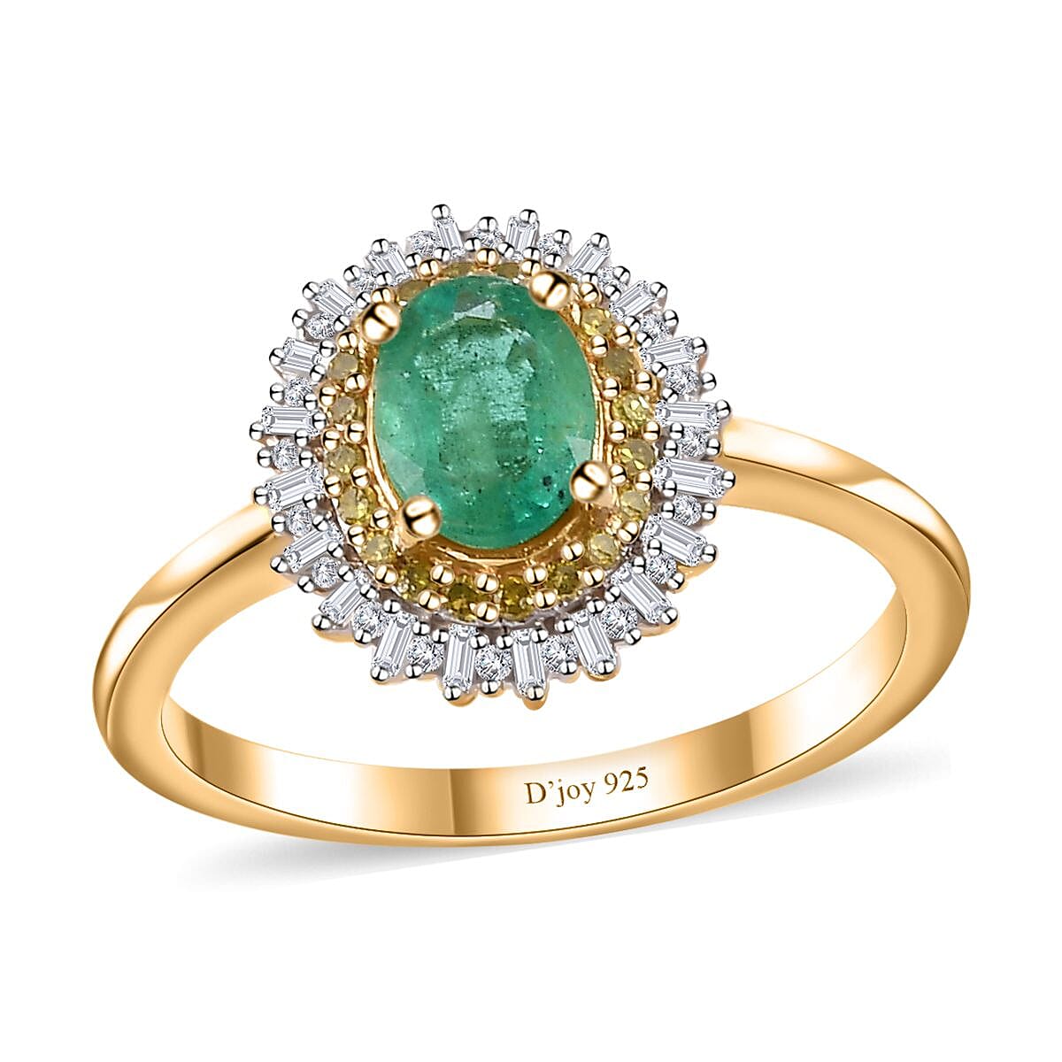 Step into a world where elegance meets brilliance with our enchanting Kagem Zambian emerald, yellow diamond, and white diamond double halo ring in vermeil yellow gold over sterling silver. This mesmerizing piece is a testament to sophistication, crafted for those who seek to adorn themselves with timeless beauty and unparalleled grace. Let this exquisite ring be the crowning jewel of your collection, a symbol of your discerning taste and refined style.