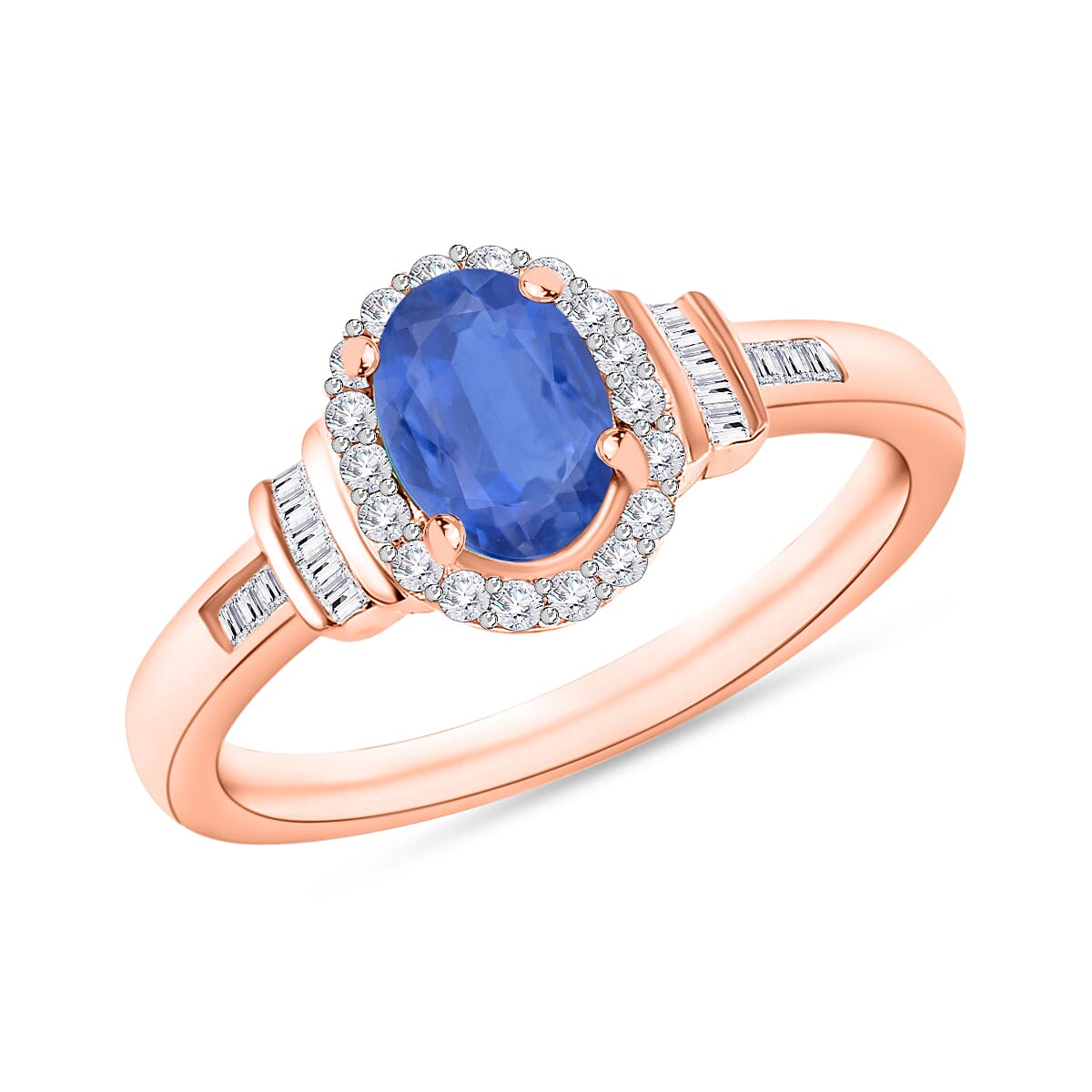 Kanchanaburi Blue Sapphire and Diamond 1.19 ctw Ring in 18K Rose Gold Vermeil Over Sterling Silver (Size 9.0) (Del. in 10-12 Days)
