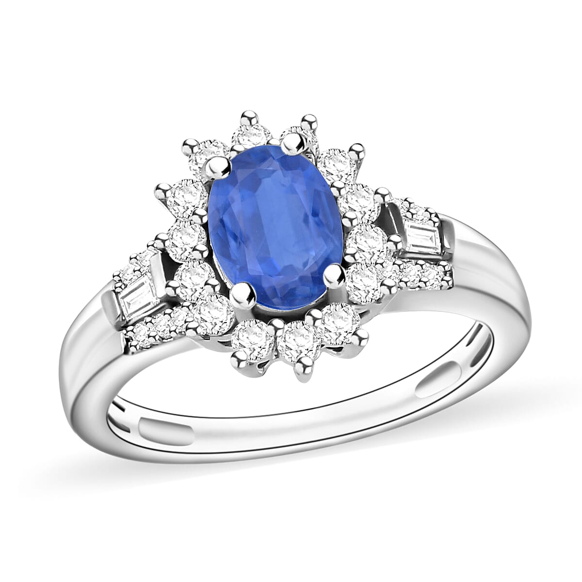 Kanchanaburi Blue Sapphire and Moissanite 1.40 ctw Ring in Rhodium Over Sterling Silver (Size 8.0) (Del. in 10-12 Days)
