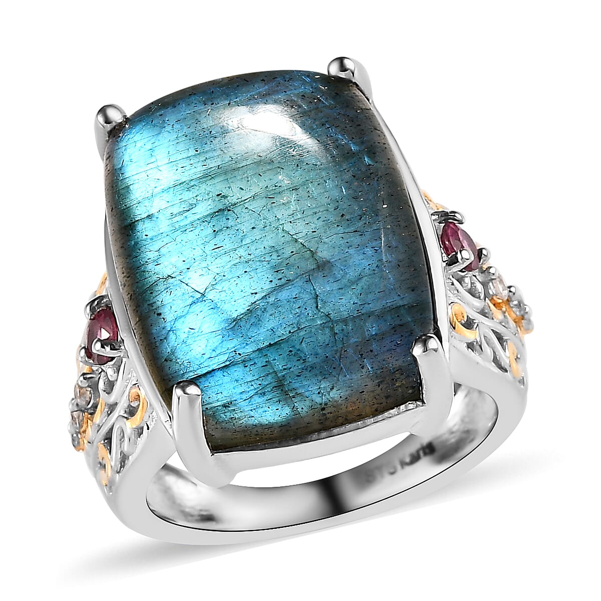Karis AAA Malagasy Labradorite and Multi Gemstone Ring in 18K YG Plated and Platinum Bond (Size 8.0) 16.10 ctw