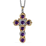 Karis African Amethyst 2.10 ctw Cross Pendant in 18K YG Plated and Platinum Bond with Stainless Steel Necklace 20 Inches
