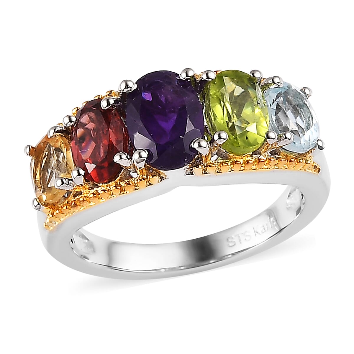Karis African Amethyst and Multi Gemstone 5 Stone Ring in 18K YG Plated and Platinum Bond (Size 5.0) 2.40 ctw