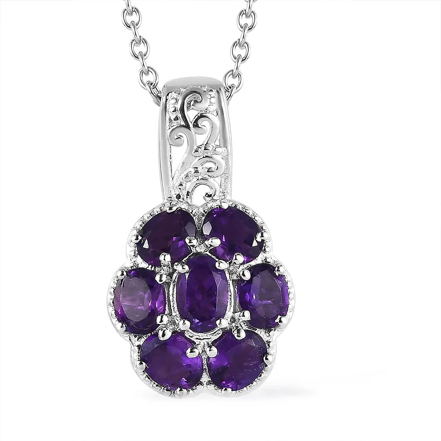 Karis African Amethyst Floral Pendant Necklace 20 Inches in Platinum Bond and Stainless Steel 2.85 ctw