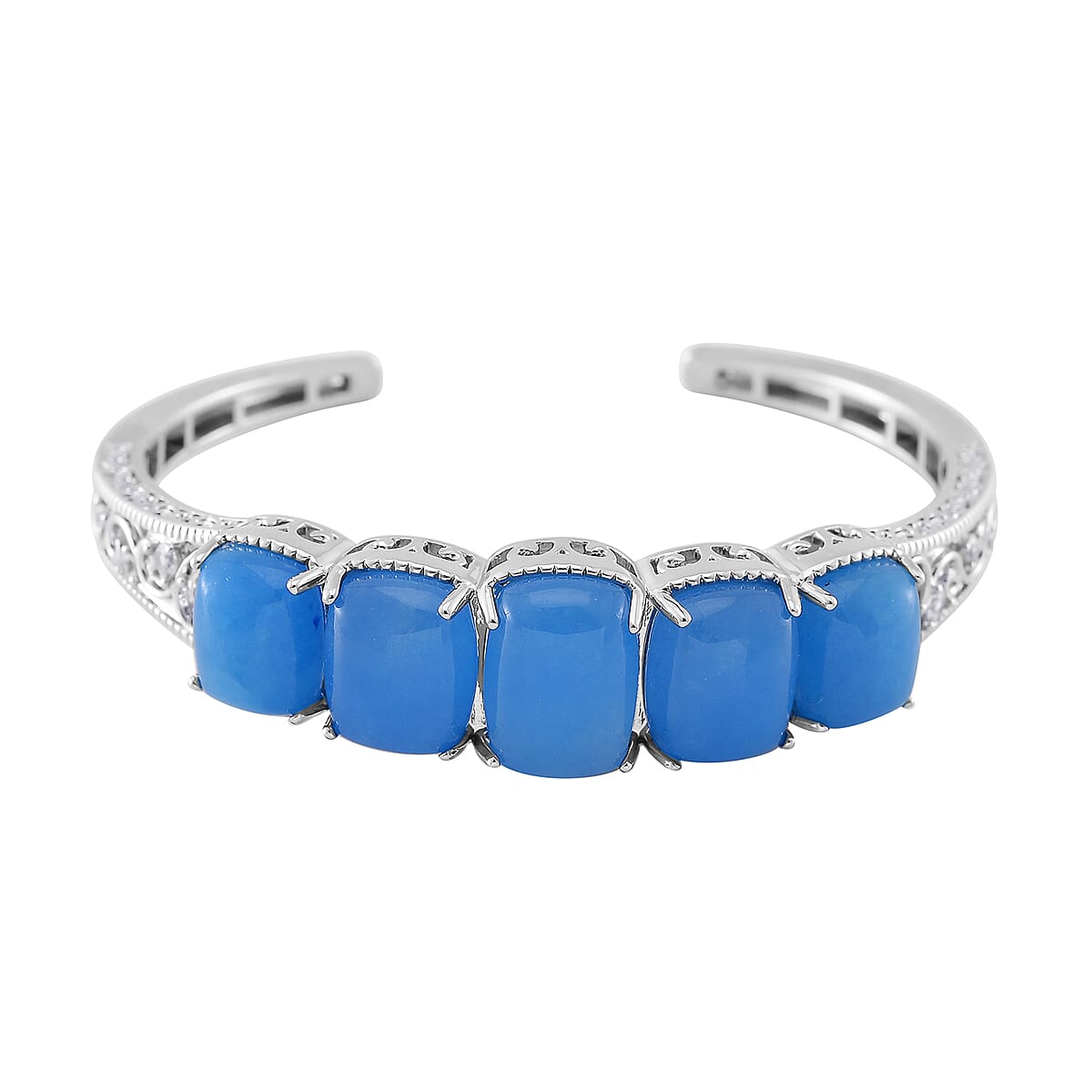 Karis Blue Jade (D) and White Zircon 35.60 ctw Cuff Bracelet in in Silvertone (6.50 In)