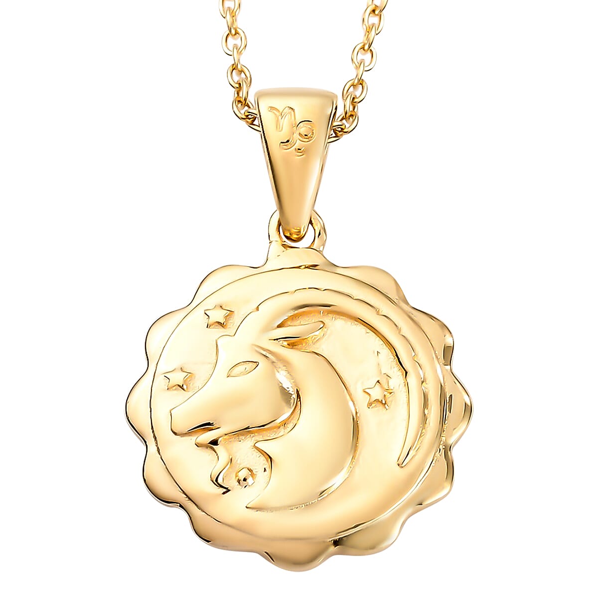 Karis Capricorn Zodiac Pendant Necklace 20 Inches in 18K YG Plated and ION Plated Yellow Gold Stainless Steel
