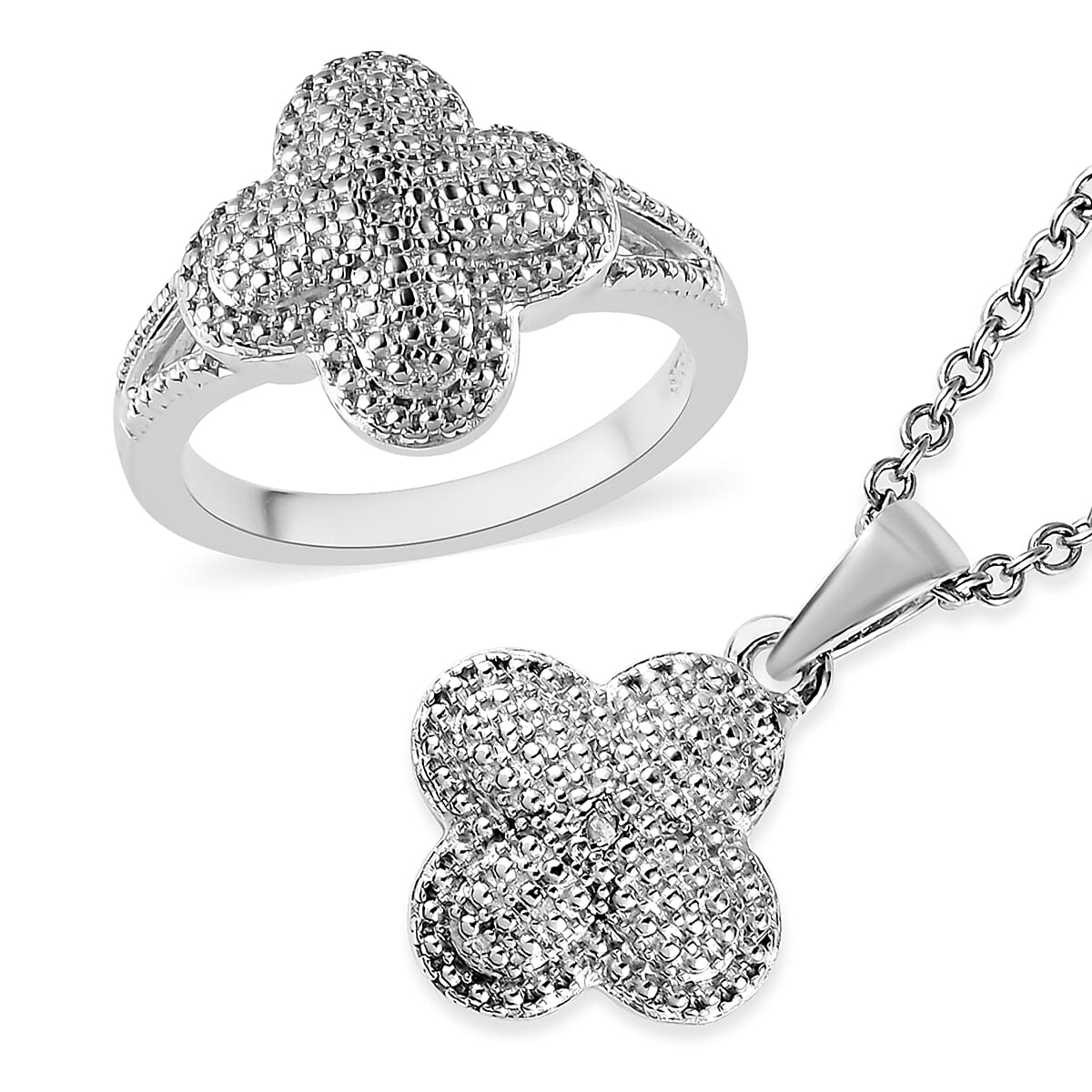 Karis Diamond Accent Ring (Size 10.0) and Pendant in Platinum Bond with Stainless Steel Necklace 20 Inches