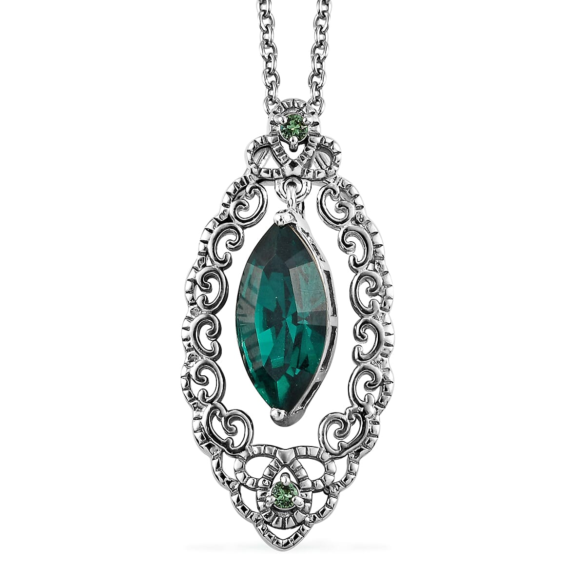 Karis Emerald Crystal Pendant Necklace 20 Inches in Platinum Bond and Stainless Steel 3.25 ctw