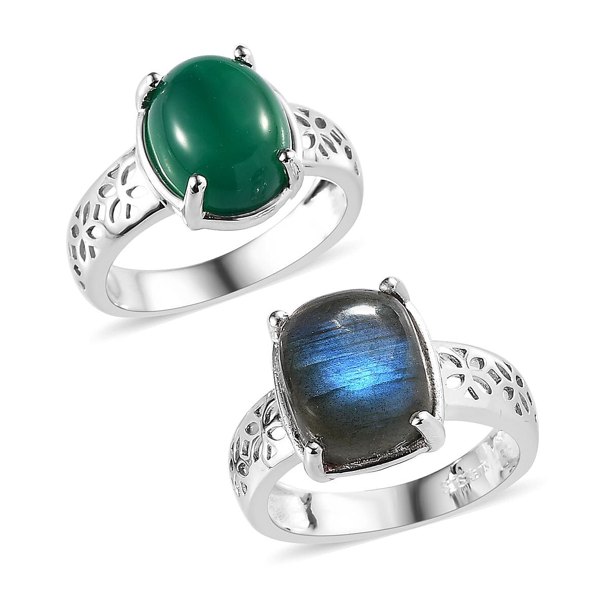 Karis Green Onyx and Malagasy Labradorite Set of 2 Solitaire Ring in Platinum Bond (Size 10.0) 8.60 ctw