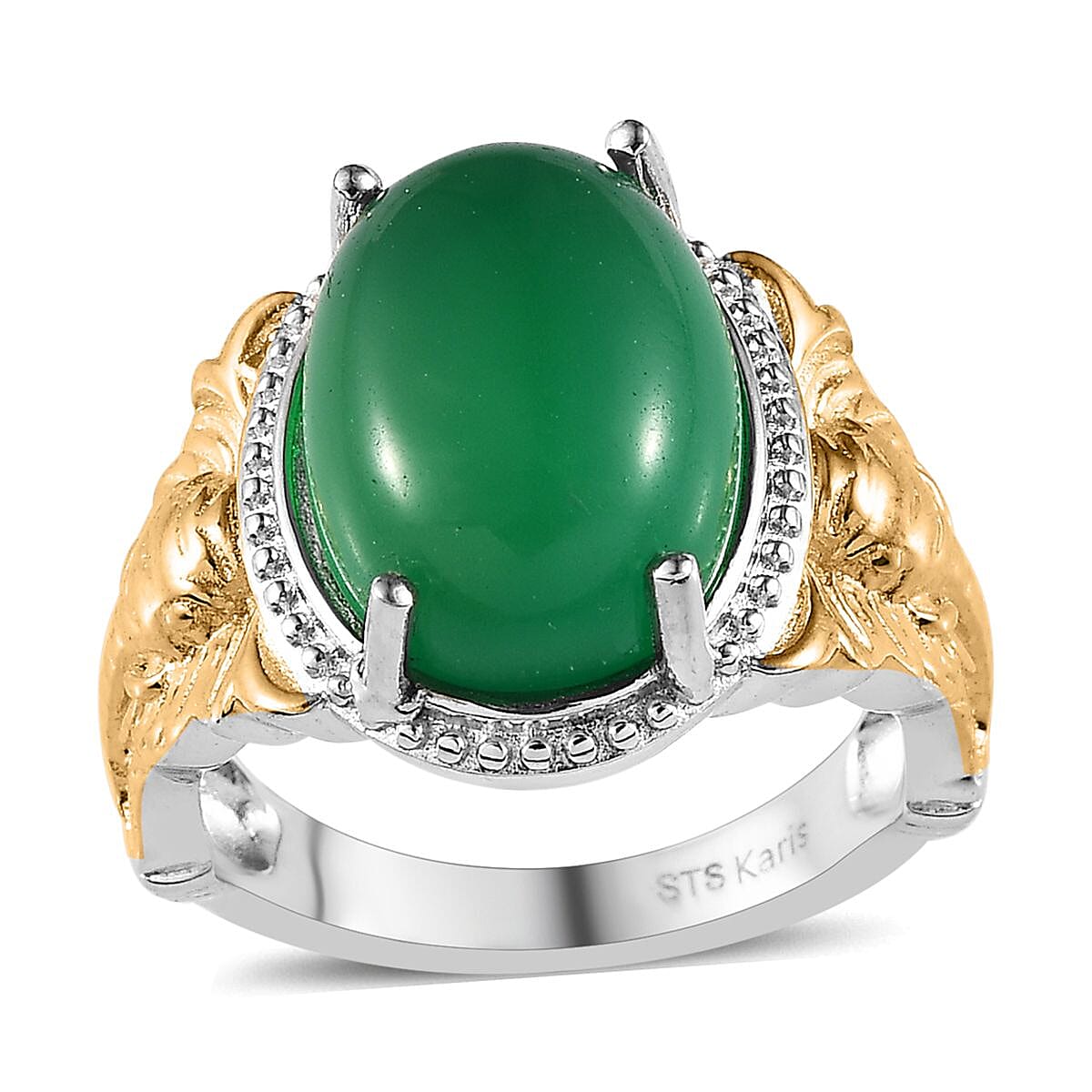 Karis Green Onyx Solitaire Ring in 18K YG Plated and Platinum Bond (Size 11.0) 6.85 ctw