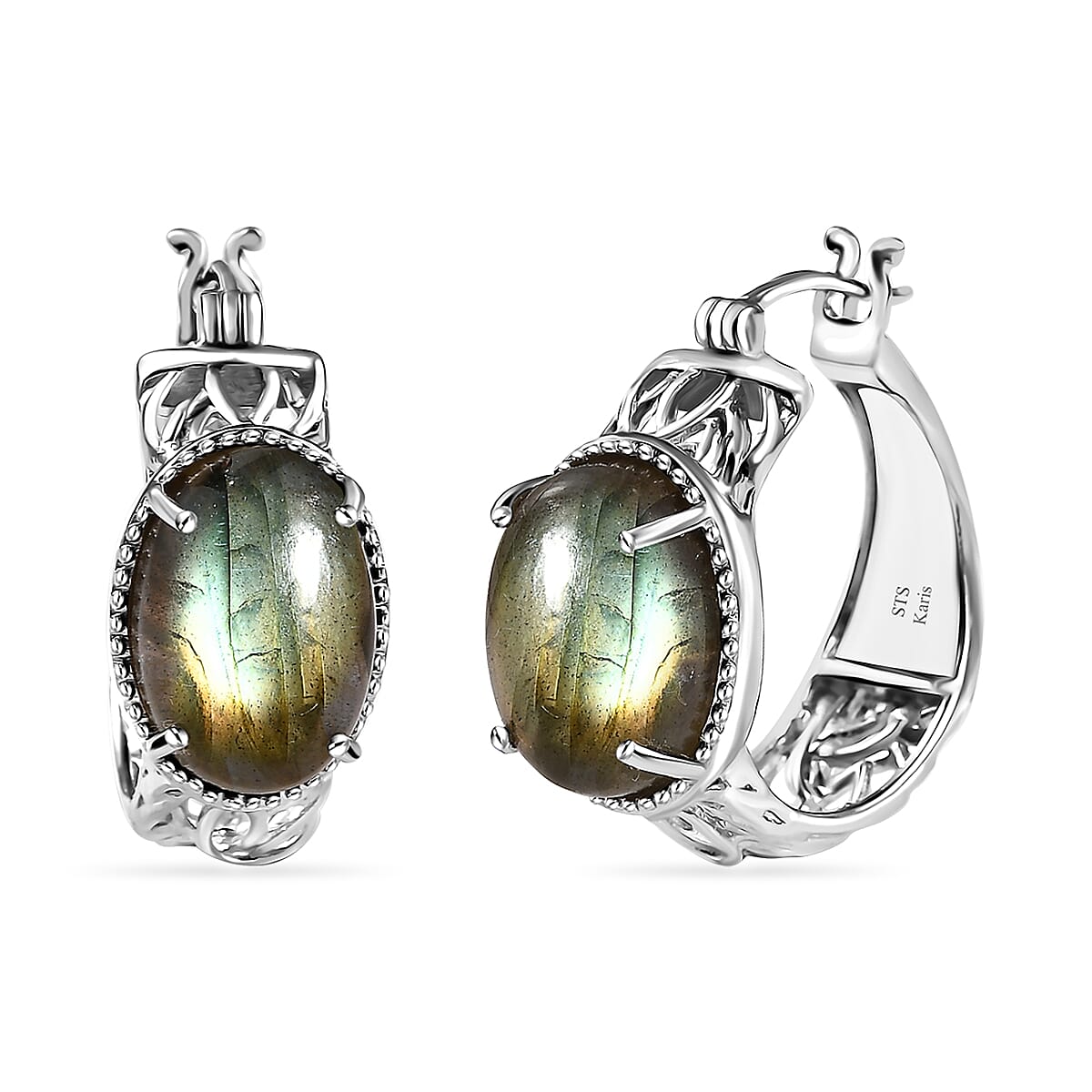 Karis Madagascar Fire Labradorite 12.00 ctw Hoop Earrings Platinum Bond
