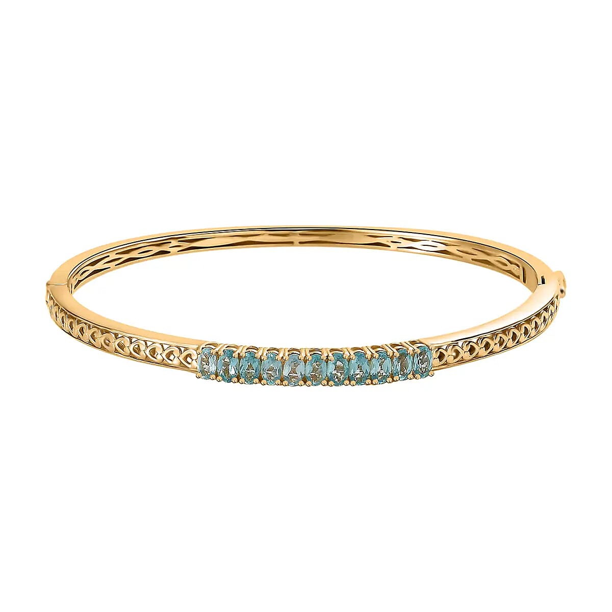 Karis Madagascar Paraiba Apatite Bangle Bracelet, Apatite Bangle, 18K Yellow Gold Plated Bracelet (8.00 In) 2.75 ctw
