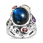 Karis Malagasy Labradorite and Multi Gemstone 12.40 ctw Celestial Garden Ring in Platinum Bond (Size 7.0)