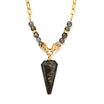 Karis Malagasy Labradorite and Thai Black Spinel 68.10 ctw Paper Clip Chain Dragon Necklace in 18K YG Plated 18-20 Inches