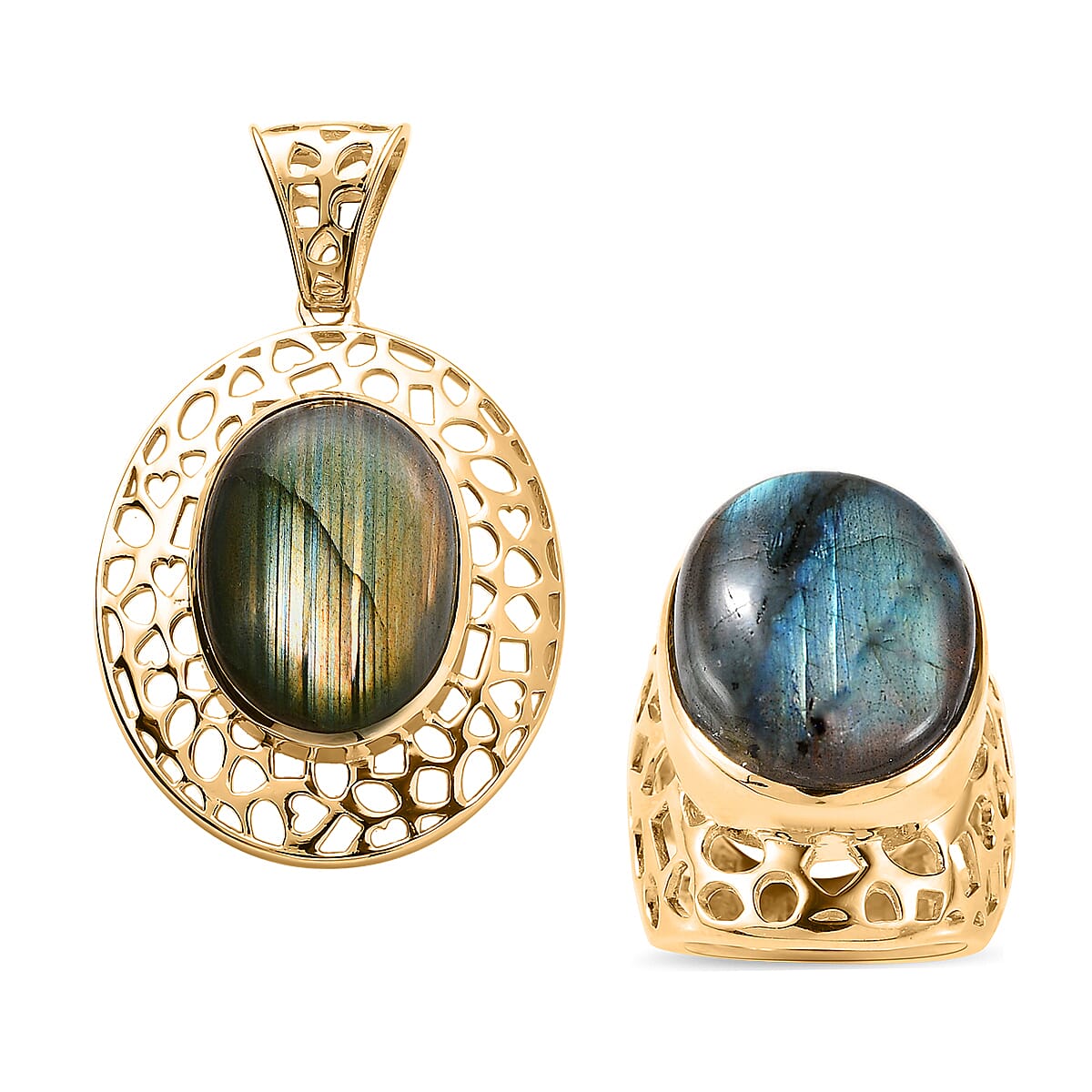 Karis Malagasy Labradorite Solitaire Ring and Pendant in 18K YG Plated 51.50 ctw