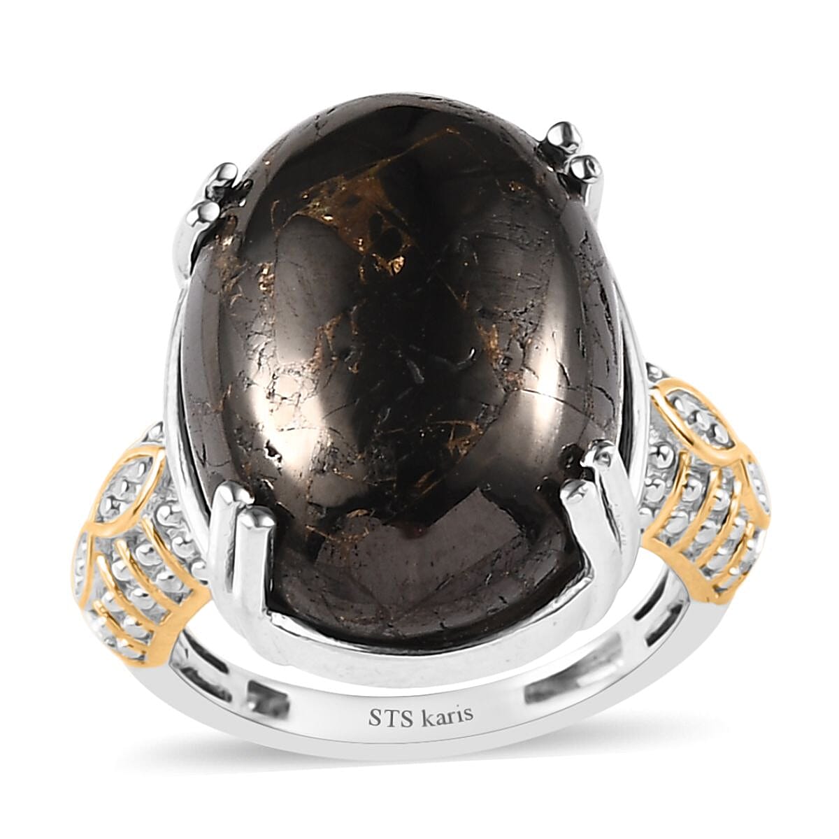 Karis Matrix Silver Shungite Solitaire Ring in 18K YG Plated and Platinum Bond (Size 10.0) 8.50 ctw