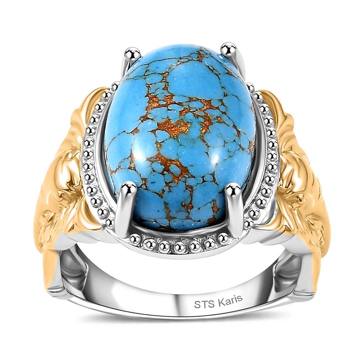 Karis Mojave Blue Turquoise 5.60 ctw Solitaire Ring in 18K YG Plated and Platinum Bond (Size 6.0)