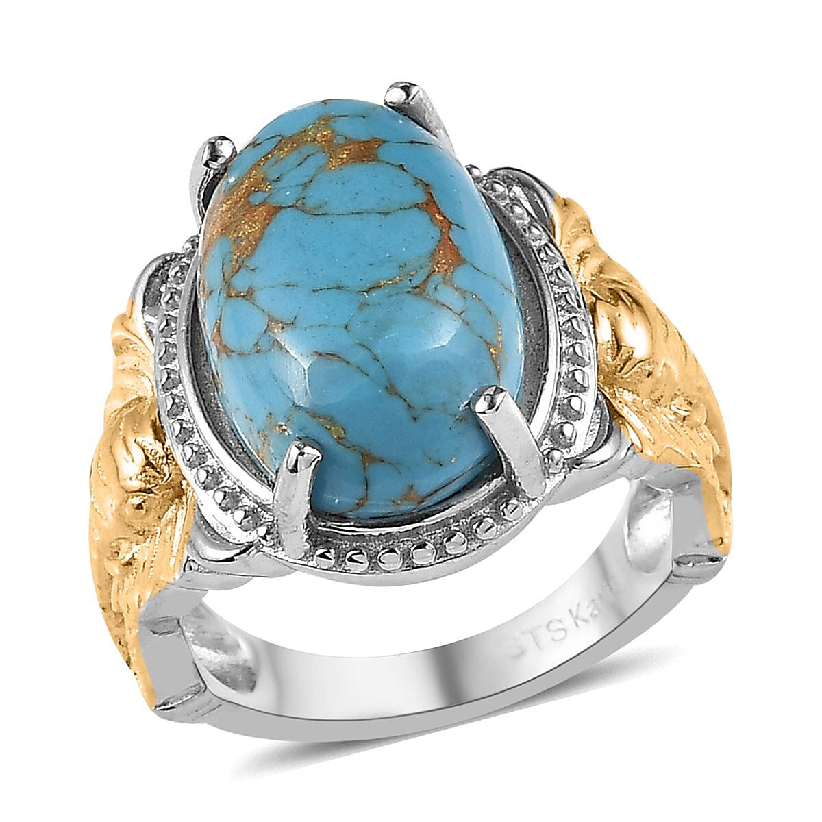 Karis Mojave Blue Turquoise Ring in 18K YG Plated and Platinum Bond (Size 11.0) 5.75 ctw