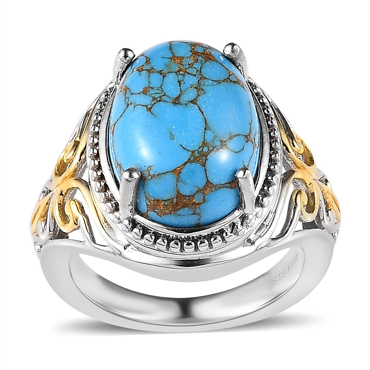 Karis Mojave Blue Turquoise Solitaire Ring in 18K YG Plated and Platinum Bond (Size 10.0) 5.35 ctw