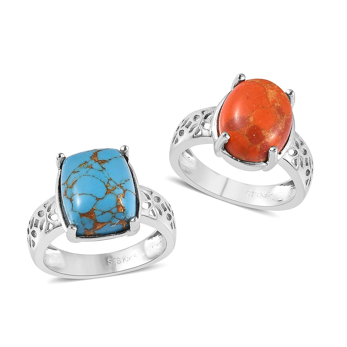 Karis Mojave Orange and Blue Turquoise Solitaire Set of 2 Ring in Platinum Bond (SIZE 7.0) 7.65 ctw