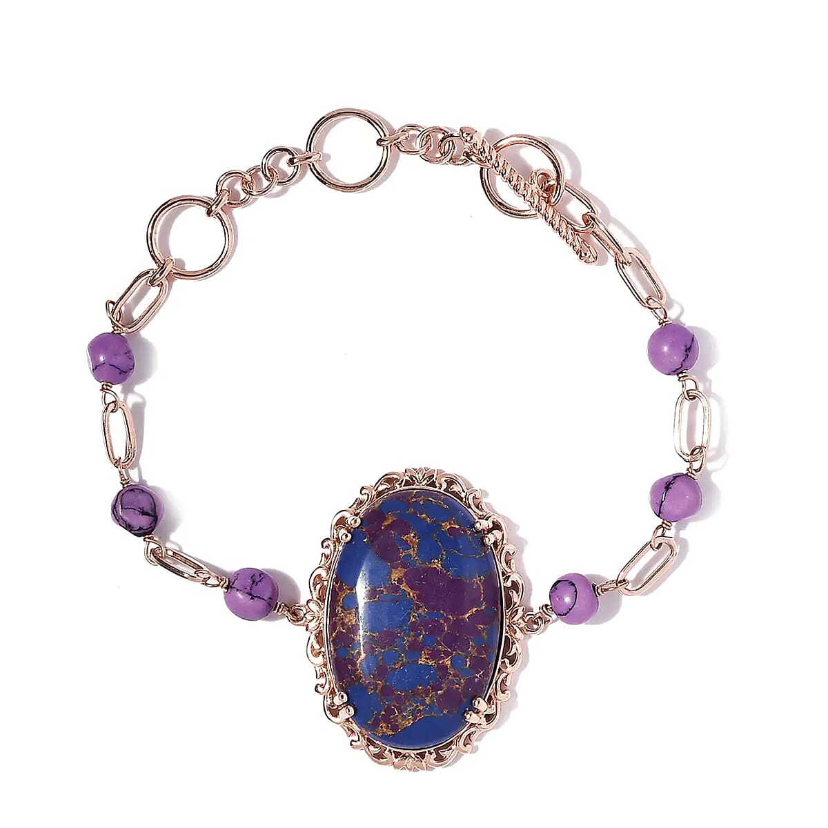 Karis Mojave Purple Turquoise Toggle Clasp Bracelet in 18K RG Plated (6.50 In) 55.00 ctw