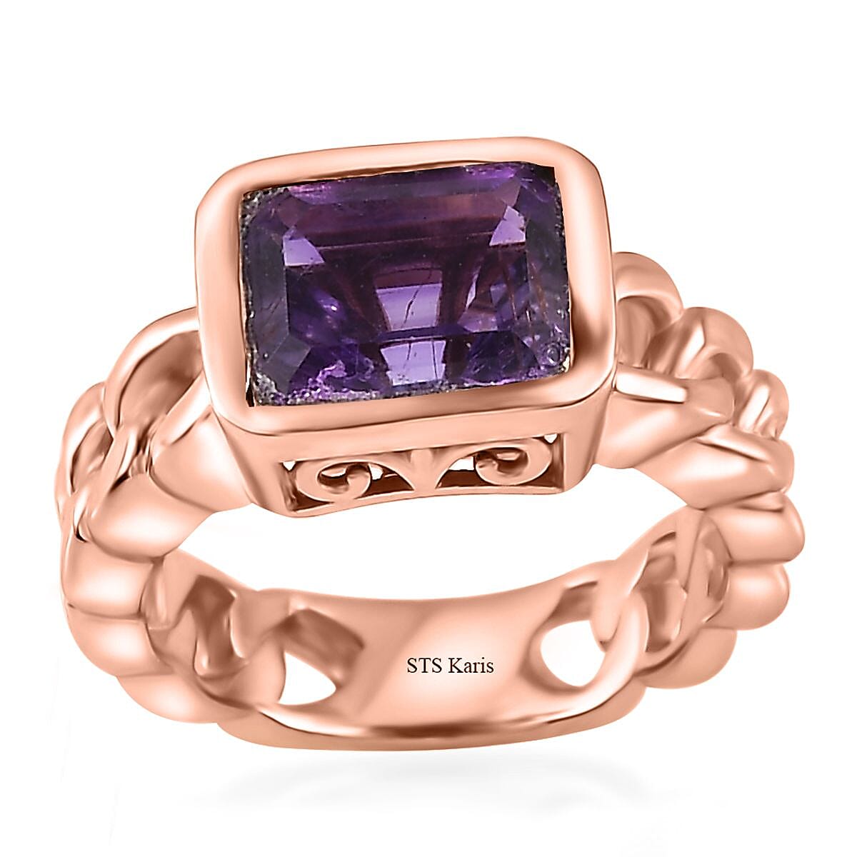 Karis Moroccan Amethyst Solitaire Ring in 18K RG Plated (Size 6.0) 2.15 ctw