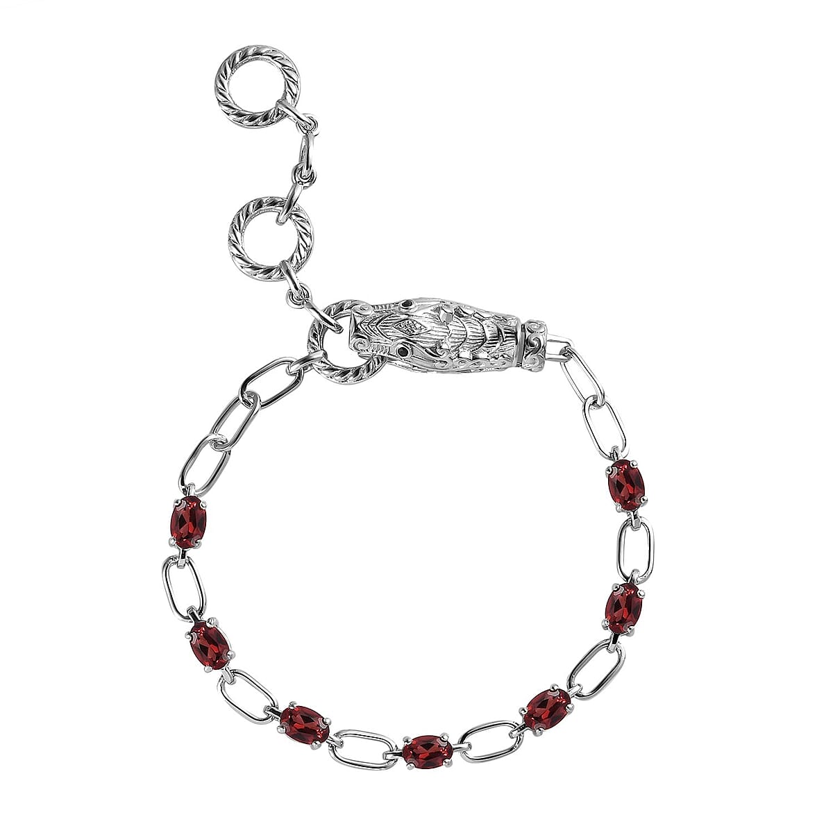 Karis Mozambique Garnet and Thai Black Spinel Paper Clip Chain Bracelet in Platinum Bond (8.00 In) 4.00 ctw