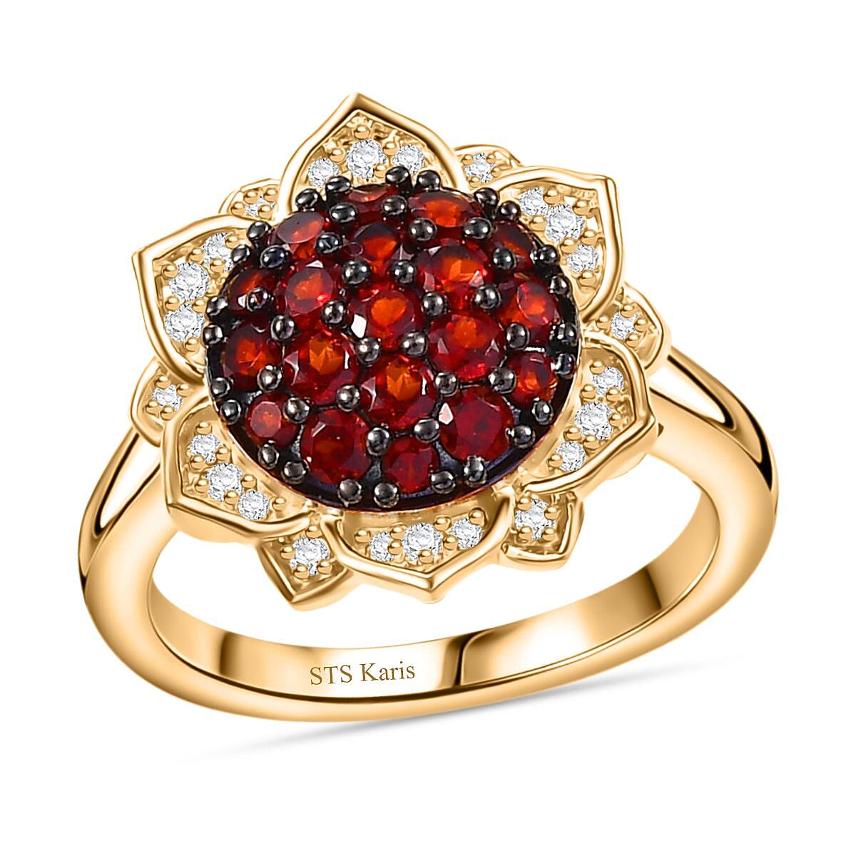 Karis Mozambique Garnet and White Zircon 1.20 ctw Lotus Flower Ring in 18K Yellow Gold Plated (Size 5.0)