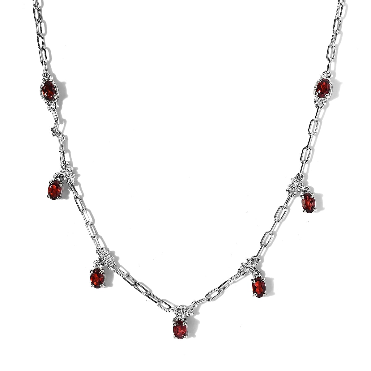 Karis Mozambique Garnet Paper Clip Chain Station Necklace 18-20 Inches in Platinum Bond 3.75 ctw