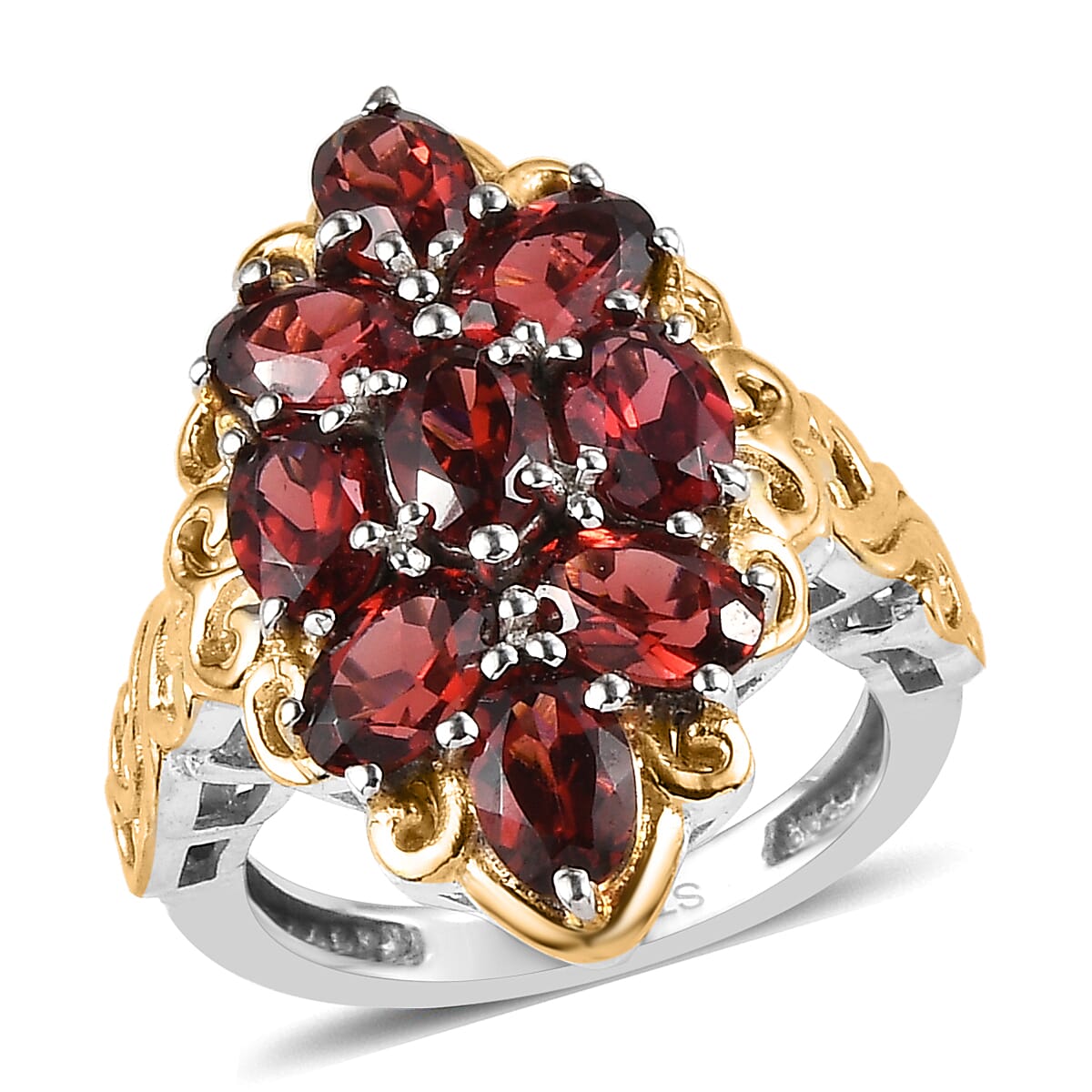 Karis Mozambique Garnet Ring in 18K Yellow Gold Plated and Platinum Bond (Size 7.0) 3.75 ctw