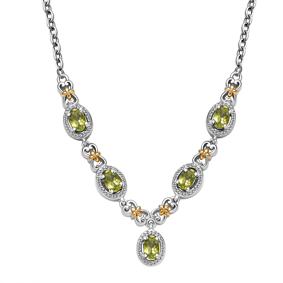 Karis Peridot 2.30 ctw Necklace in 18K YG Plated with Platinum Bond and Stainless Steel 18-20 Inches