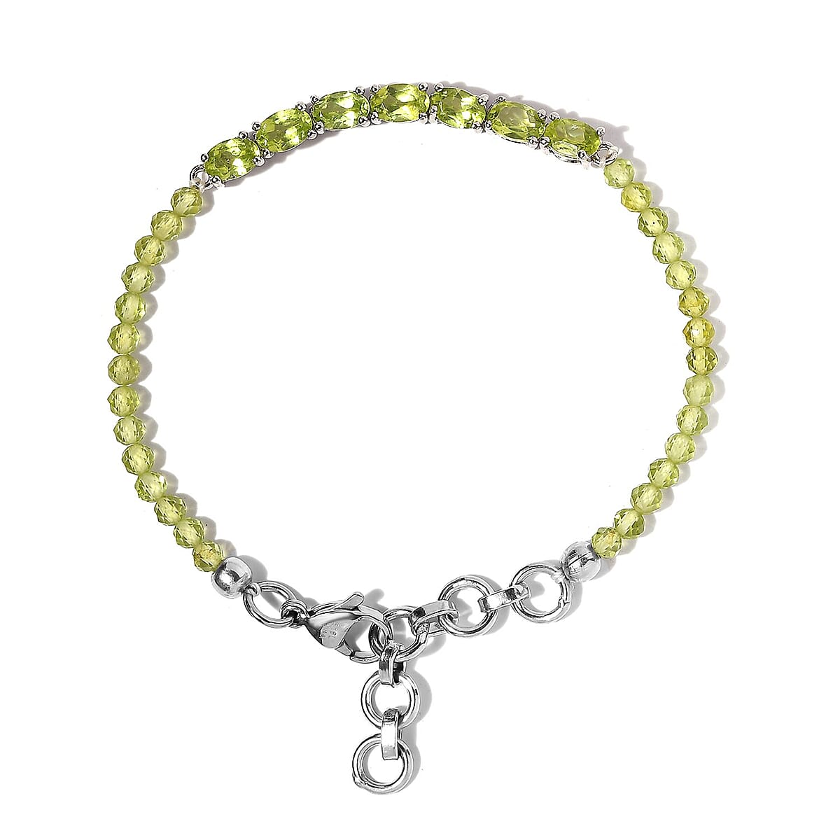 Karis Peridot Beaded Bracelet in Platinum Bond (6.50-8.00In) 12.80 ctw