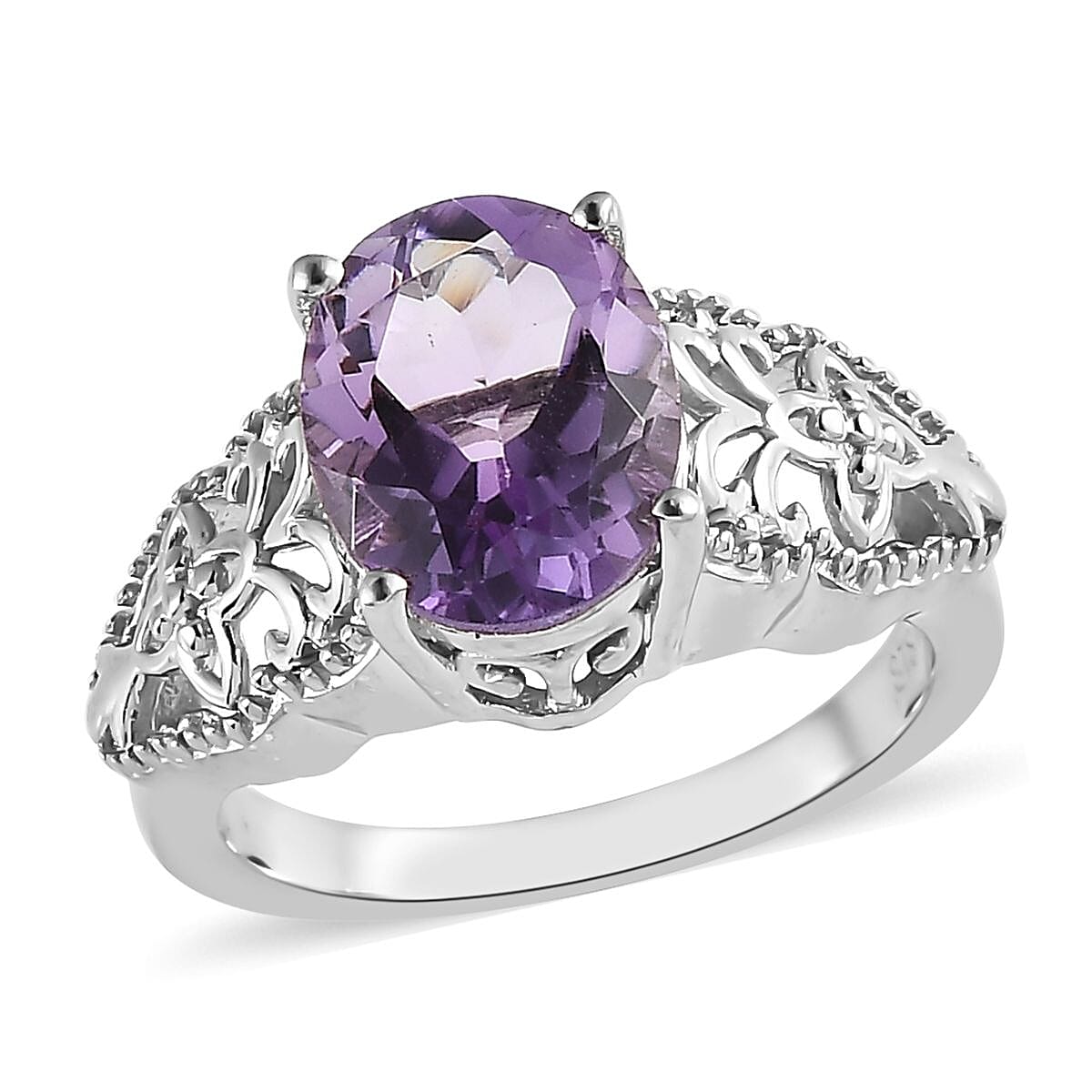 Introducing the exquisite Karis rose de France amethyst solitaire ring in platinum bond from the Karis Collection. This stunning women's ring features a captivating oval-shaped Rose de France amethyst, known for its delicate lavender hue and serene beauty. The solitaire design holds deep significance, symbolizing timeless elegance and singular devotion. Adorned with smooth open scrollwork on the shank, this ring is a true masterpiece. Elevate your style with the enchanting allure of the Karis rose de France amethyst solitaire ring in platinum bond, a captivating blend of grace and sophistication.