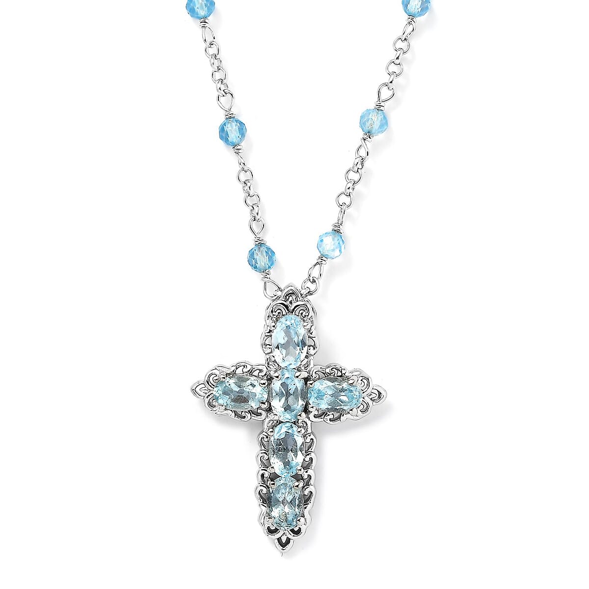 Karis Sky Blue Topaz Cross Necklace 18-20 Inches in Platinum Bond 8.50 ctw