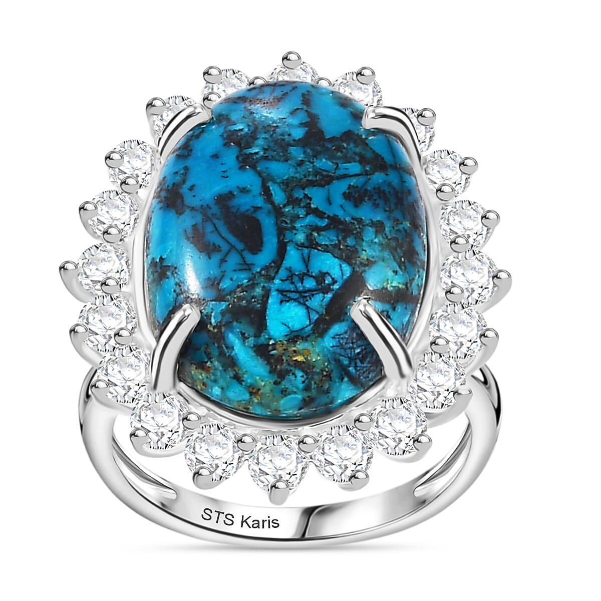 Karis Table Mountain Shadowkite and White Zircon 15.80 ctw Sunburst Ring in Platinum Bond (Size 9.0)