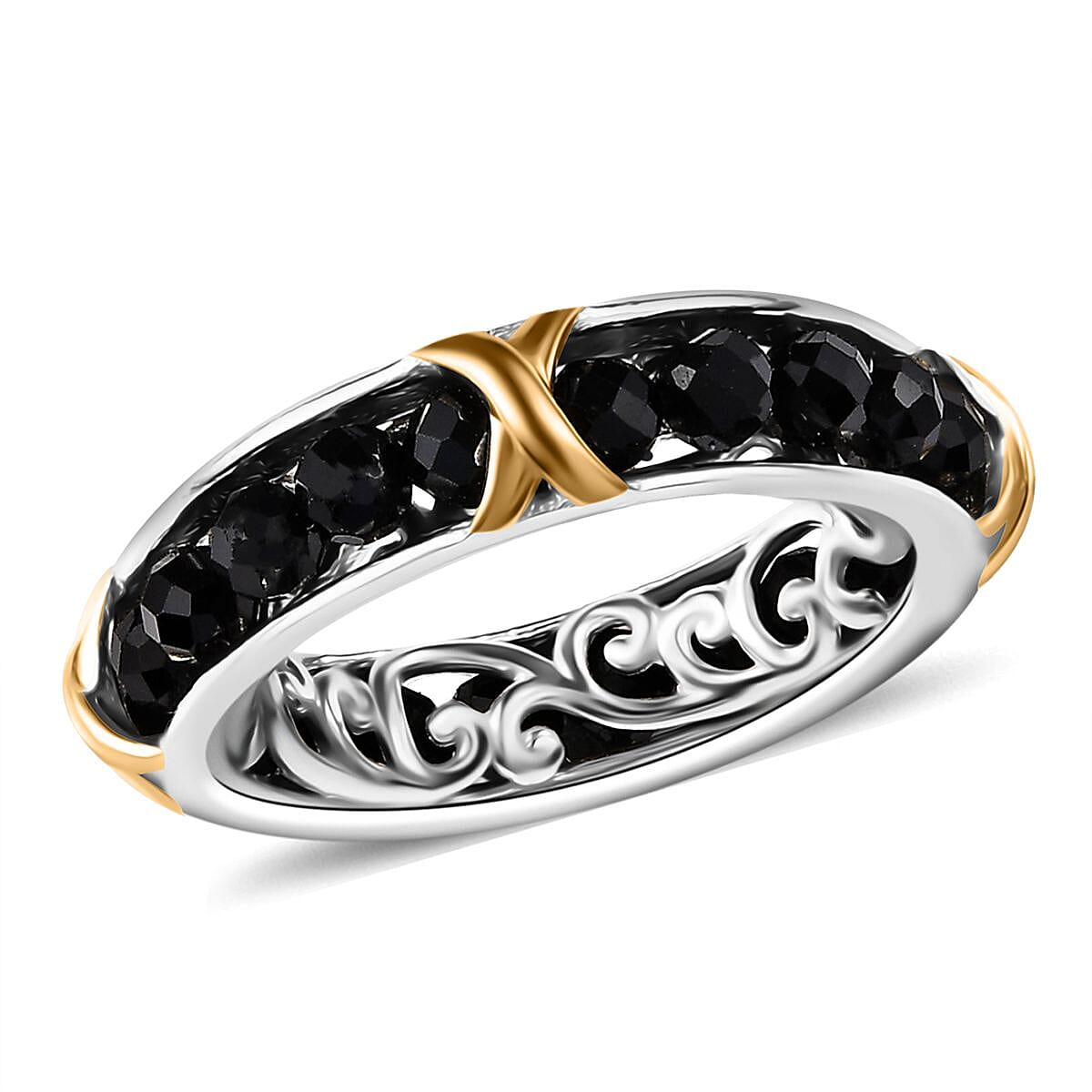 Karis Thai Black Spinel 5.90 ctw XOXO Band Ring in 18K YG Plated and Platinum Bond (Size 7.0)