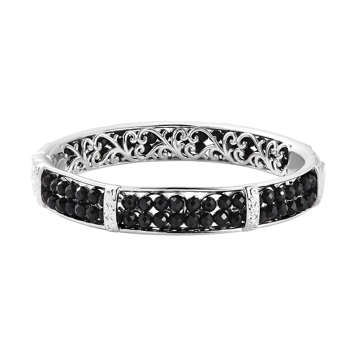 Karis Thai Black Spinel Bangle Bracelet in Platinum Bond (6.50 In) 25.00 ctw