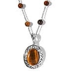 Karis Tiger's Eye Necklace (18 Inches) in Platinum Bond and Stainless Steel 16.75 ctw , Tarnish-Free, Waterproof, Sweat Proof Jewelry