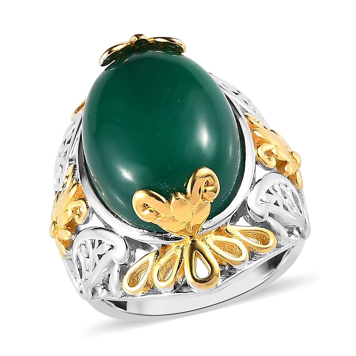 Karis Verde Onyx Solitaire Ring in 18K YG Plated and Platinum Bond (Size 7.0) 10.50 ctw