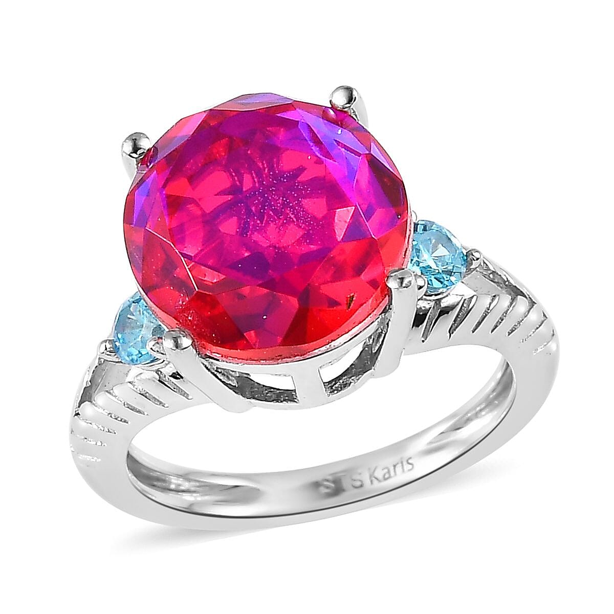 Karis Volcanic Quartz (Triplet) and Simulated Blue Diamond Ring in Platinum Bond (Size 10.0) 6.00 ctw