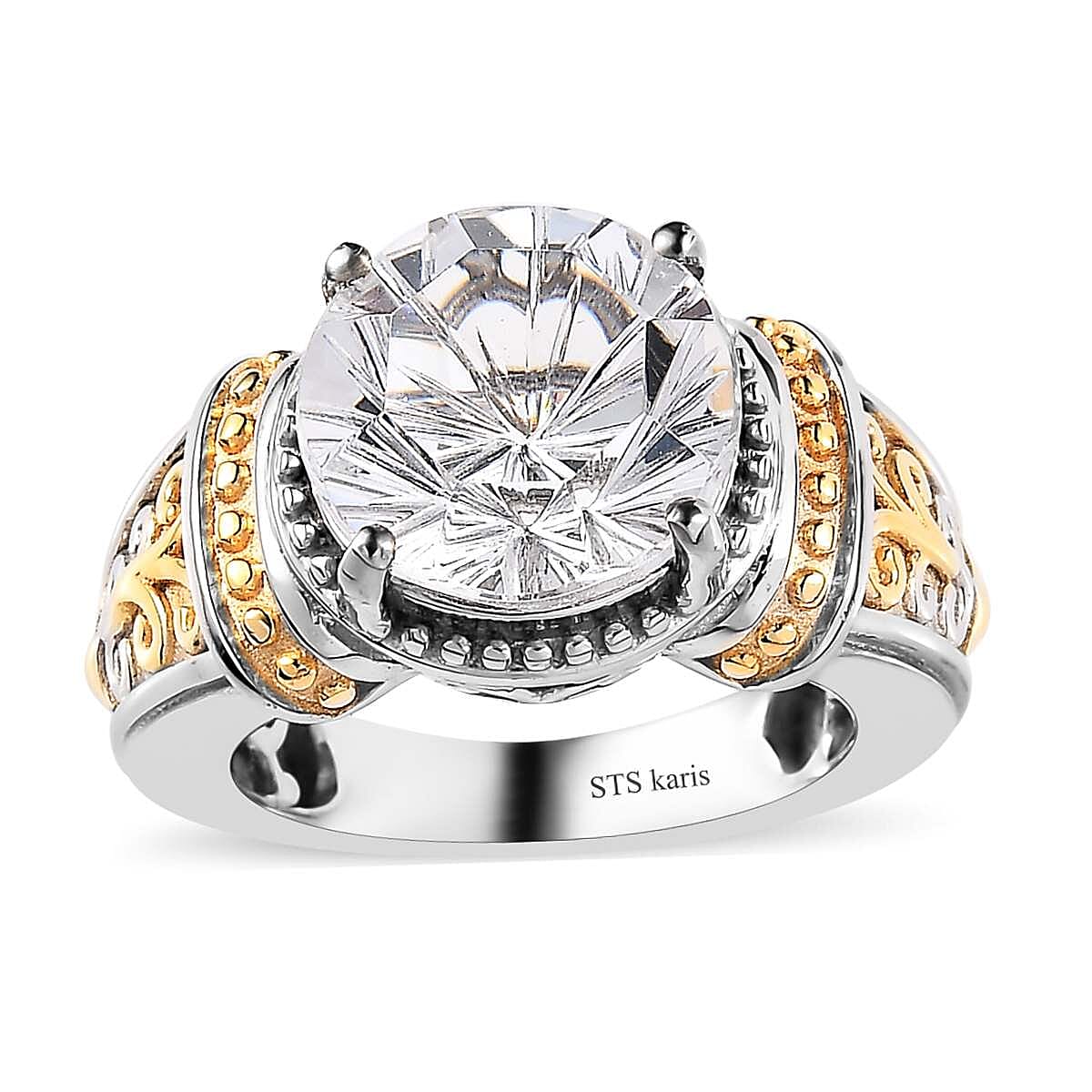 Karis White Crystal Solitaire Ring in 18K YG Plated and Platinum Bond (Size 10) 5.40 ctw