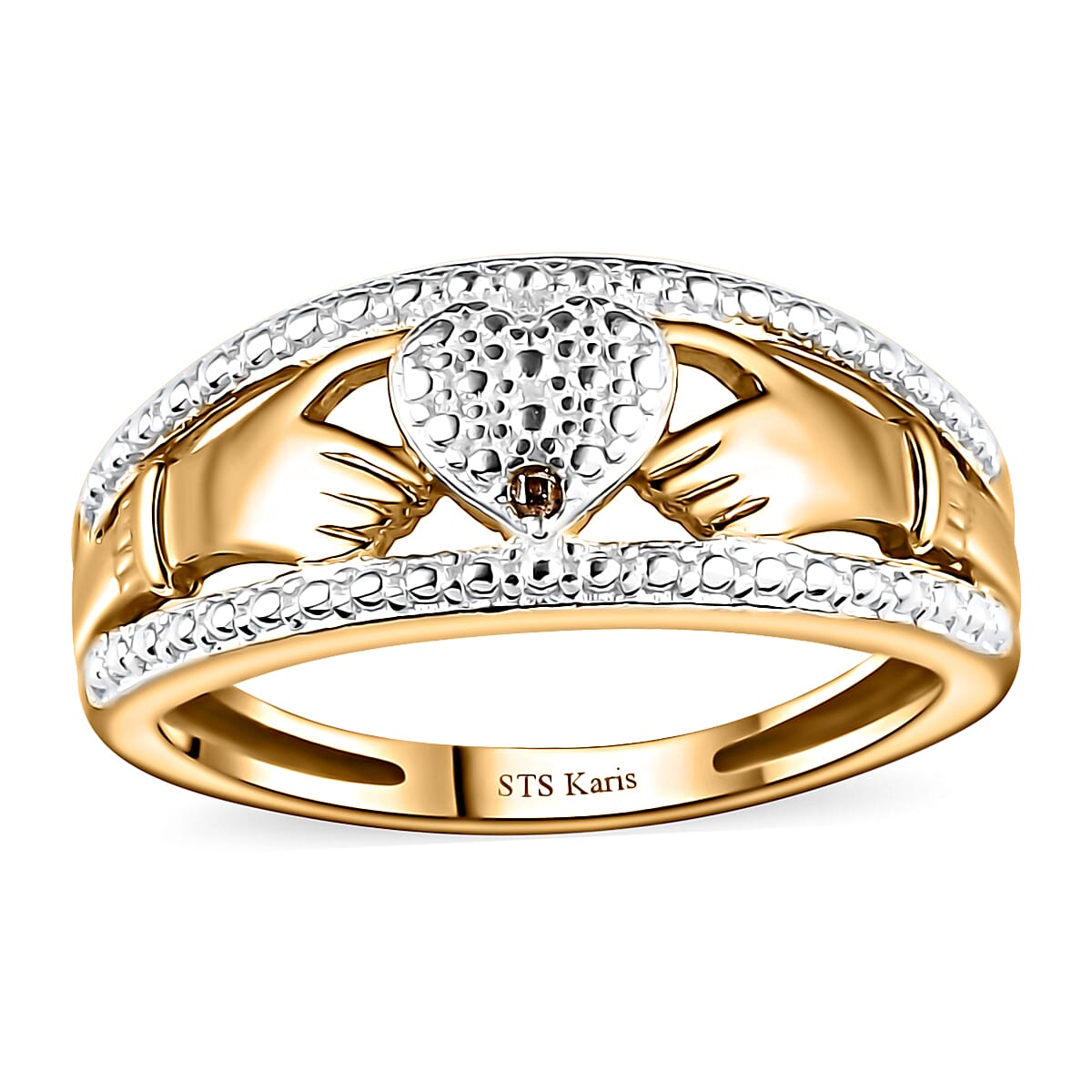 Karis White Diamond Accent Claddagh Ring in Platinum Bond & 18K Yellow Gold Plated (Size 6.0)