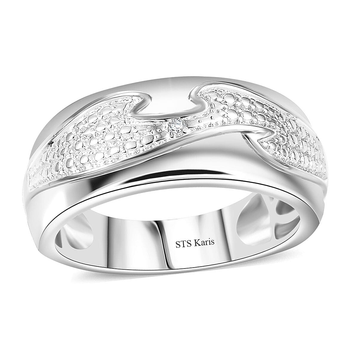 This Karis diamond accent ring adds sophistication to any occasion. Its classic design highlights the brilliant diamond accent, making it a stunning accessory that enhances both casual and formal looks.